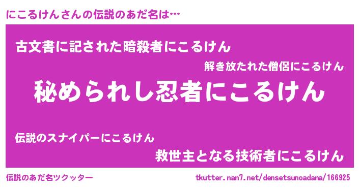 | ヒーロー風カッコイイあだ名 | 『仮面ニコダー』『ネオニコルケン』 |