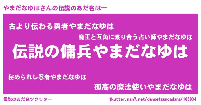 | 女子向けラノベタイトル風あだ名 | 『(仮)やまだなゆはのやんごとなき事情』 |