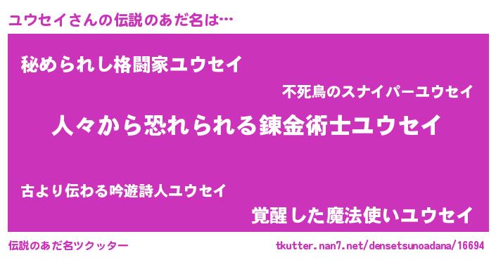 ヒーロー風カッコイイあだ名 | 『友情の使者ユウセイ』『仮面ユウダー』 |