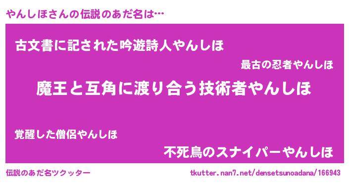 | ヒーロー風カッコイイあだ名 | 『愛の使者やんしほ』『ネオヤンシホ』 |