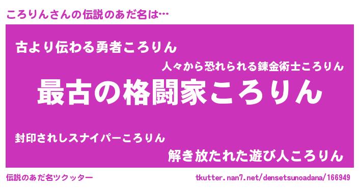 | 男性向けラノベタイトル風あだ名 | 『転生したらころりんだった件』 |