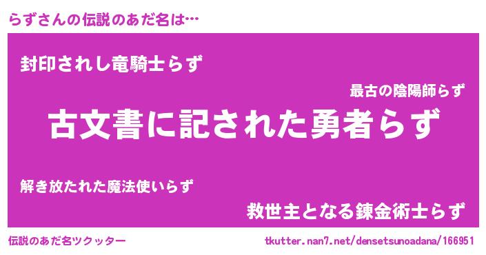 | 意味不明あだ名 | 『自称らず』『永久保存らず』 |