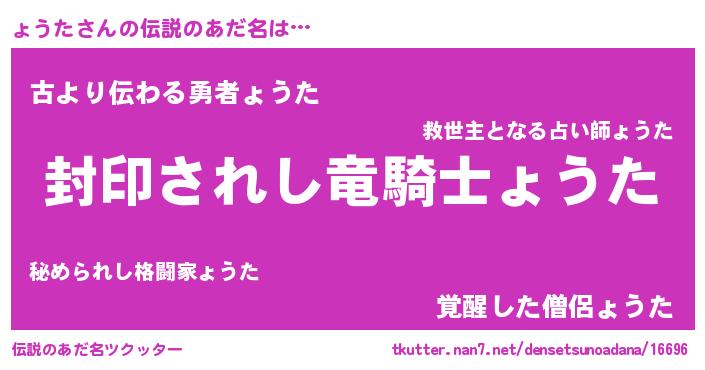 | ヒーロー風カッコイイあだ名 | 『スーパーョウタ』『ネオョウタ』 |