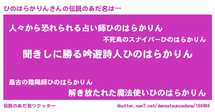| 意味不明あだ名 | 『永久保存ひのはらかりん』 |