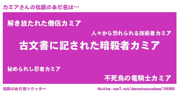 | 意味不明あだ名 | 『永久保存カミア』『自称カミア』 |