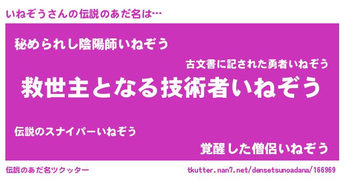 | ポケモン風あだ名 | 『イックウザ』『イネゾダネ』 |