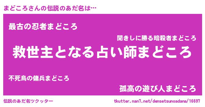 | ヒーロー風カッコイイあだ名 | 『天空の使者まどころ』『仮面マドダー』 |