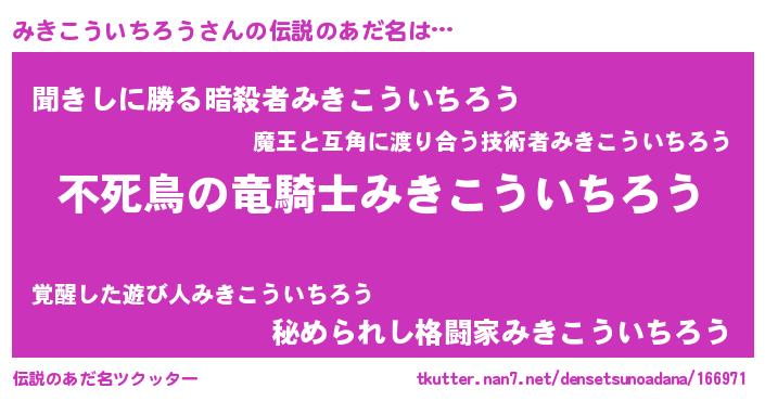 | ヒーロー風カッコイイあだ名 | 『サイバー戦士ミキコウイチロウ』 |