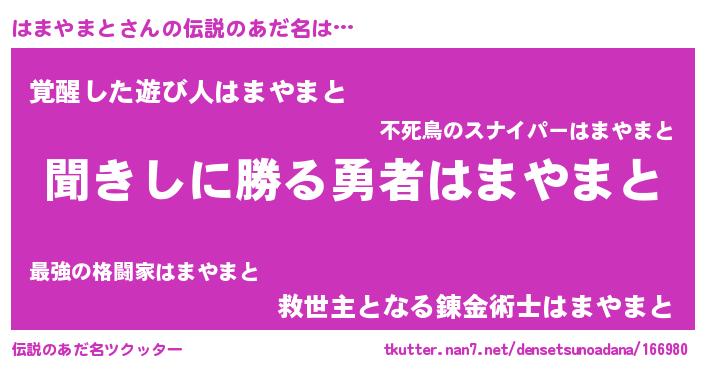| 意味不明あだ名 | 『永久保存はまやまと』『自称はまやまと』 |