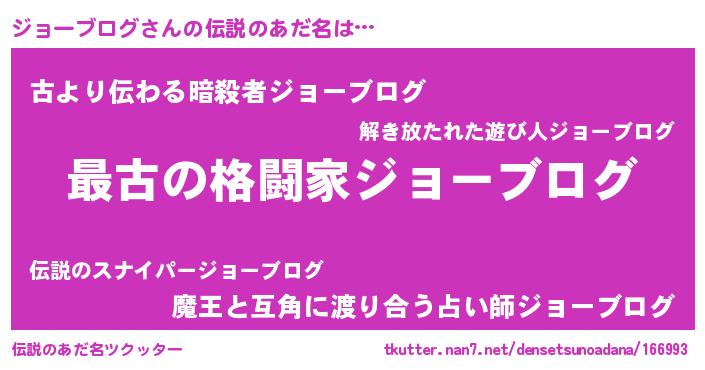 | 意味不明あだ名 | 『ジョーブログフォーエバー』 |