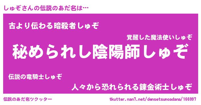 | ファンタジー風あだ名 | 『エターナルシュゾー』『カークシュラー』 |