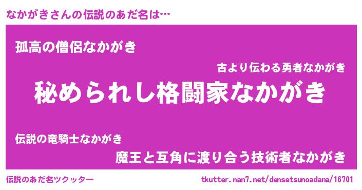 | 意味不明あだ名 | 『なかがきフォーエバー』『自称なかがき』 |