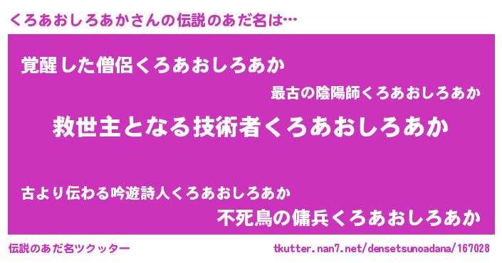 | 意味不明あだ名 | 『自称くろあおしろあか』 |