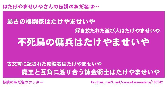 | 胡散臭い通販商品みたいなあだ名 | 『モテモテ間違いなし水晶球…その名も「はたけやませいや」』 |