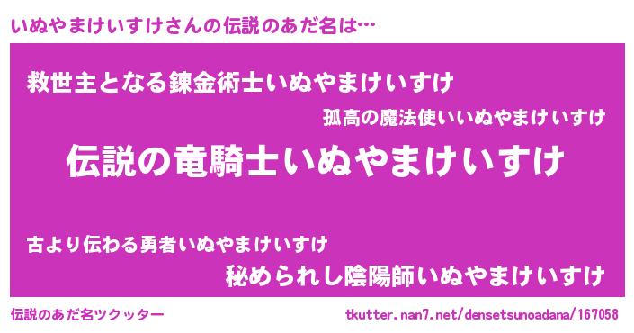 | 意味不明あだ名 | 『ペロリンいぬやまけいすけ』 |