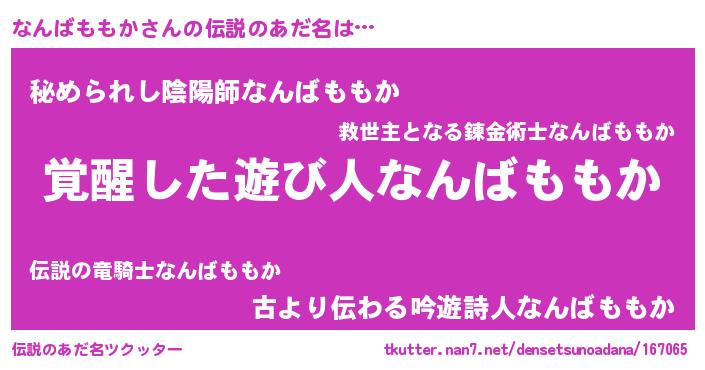 | 男性向けラノベタイトル風あだ名 | 『この素晴らしい世界になんばももかを!』 |