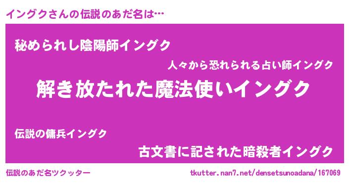 | 意味不明あだ名 | 『とにかく怪しいイングク』 |