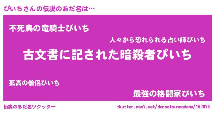 | ヒーロー風カッコイイあだ名 | 『ネオピイチ』『仮面ピイダー』 |