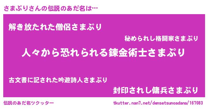 | ヒーロー風カッコイイあだ名 | 『正義の使者さまぷり』『幻影騎士サマ』 |