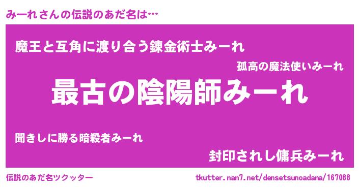 | 意味不明あだ名 | 『みーれフォーエバー』『自称みーれ』 |