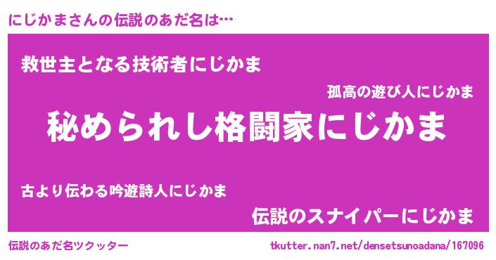| 意味不明あだ名 | 『にじかまフォーエバー』『自称にじかま』 |