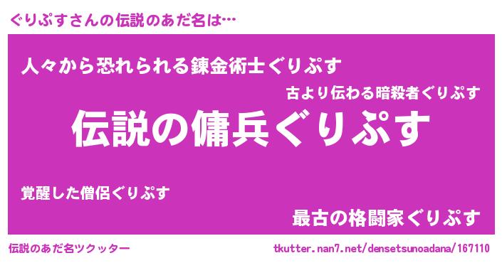 | 意味不明あだ名 | 『住所不定無職ぐりぷす(59歳)』 |