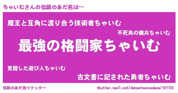 | ヘコむあだ名 | 『酢こんぶ』『ちゃいむ(小並感)』 |