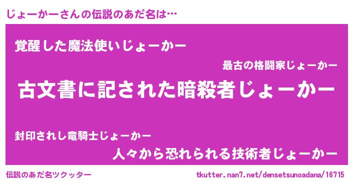 | 意味不明あだ名 | 『永久保存じょーかー』『自称じょーかー』 |