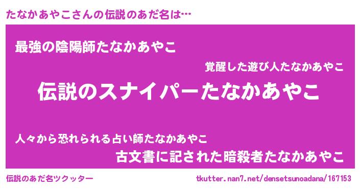 | 胡散臭い通販商品みたいなあだ名 | 『必ず成功する霊験あらたかなお札…その名も「たなかあやこ」』 |