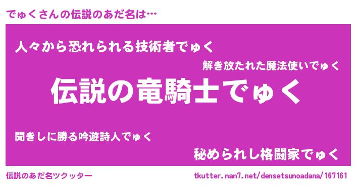 | ヘコむあだ名 | 『でゅにー』『つくし』『でゅお』 |