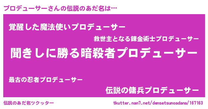 | 意味不明あだ名 | 『永久保存プロデューサー』 |