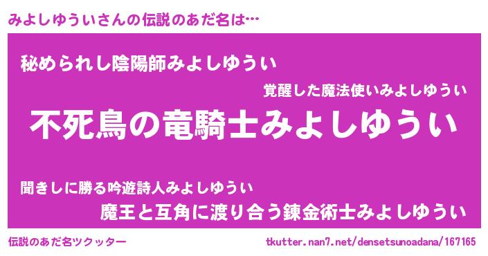 | 欧米人風あだ名 | 『みよしゆうい・ステッグマイヤー』 |