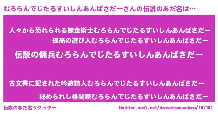 | 欧米人風あだ名 | 『マイケルむろらんでじたるすいしんあんばさだー』 |