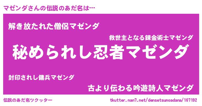 | 意味不明あだ名 | 『住所不定無職マゼンダ(43歳)』 |