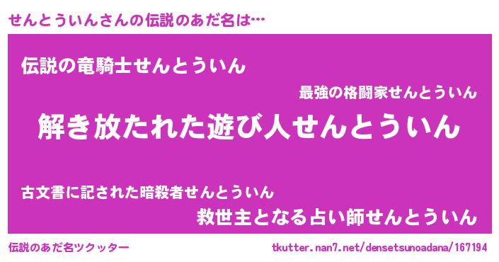| ヒーロー風カッコイイあだ名 | 『魔戒騎士セン』『スーパーセントウイン』 |