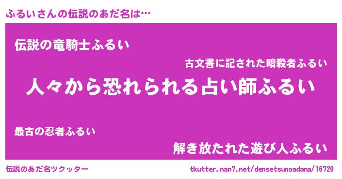 | ヒーロー風カッコイイあだ名 | 『正義の使者ふるい』『スーパーフルイ』 |