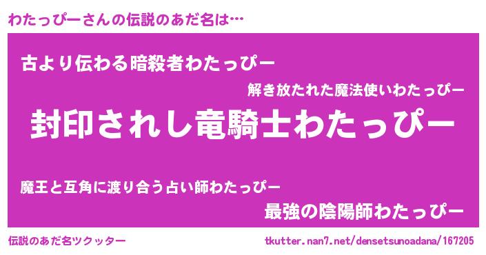 | 男性向けラノベタイトル風あだ名 | 『ワタッピーアートオンライン』 |