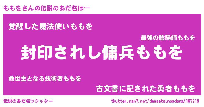 | 意味不明あだ名 | 『ニラ科ももを属』『自称ももを』 |