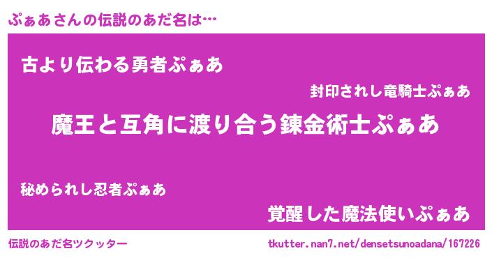 | 女子向けラノベタイトル風あだ名 | 『首の姫と首なしぷぁあ』『ぷぁあ恋絵巻』 |