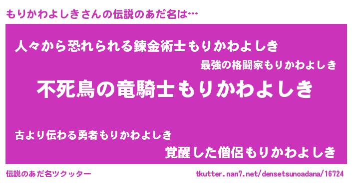 | 男性向けラノベタイトル風あだ名 | 『転生したらもりかわよしきだった件』 |