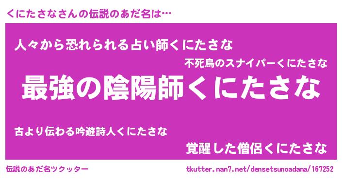 | ファンタジー風あだ名 | 『エターナルクニタサナー』『ゼクニトゥ』 |