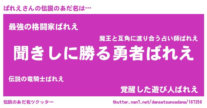 | ファンタジー風あだ名 | 『バレディッシュ』『エターナルバレエー』 |