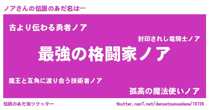 | 男性向けラノベタイトル風あだ名 | 『この素晴らしい世界にノアを!』 |