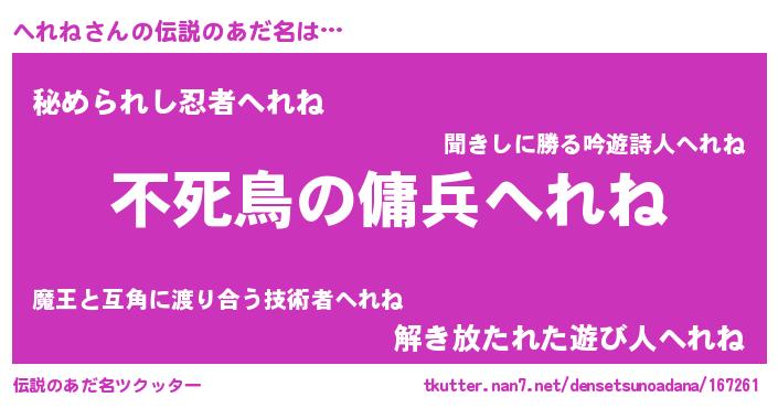 | ヘコむあだ名 | 『へれにゅー』『つくし』 |