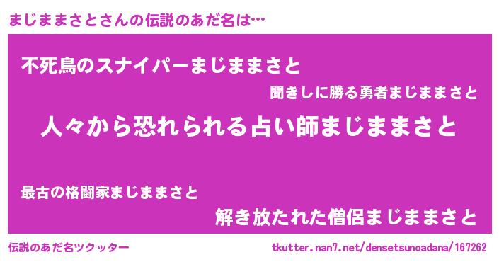 | 意味不明あだ名 | 『住所不定無職まじままさと(14歳)』 |