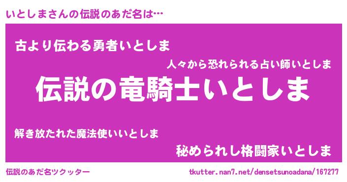| 男性向けラノベタイトル風あだ名 | 『いとしまの憂鬱』『イトシマスレイヤー』 |