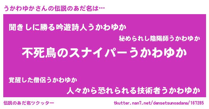 | ヘコむあだ名 | 『うかっふぃ~』『うかわゆか(小並感)』 |