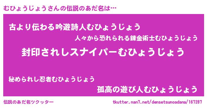 | 意味不明あだ名 | 『自称むひょうじょう』 |