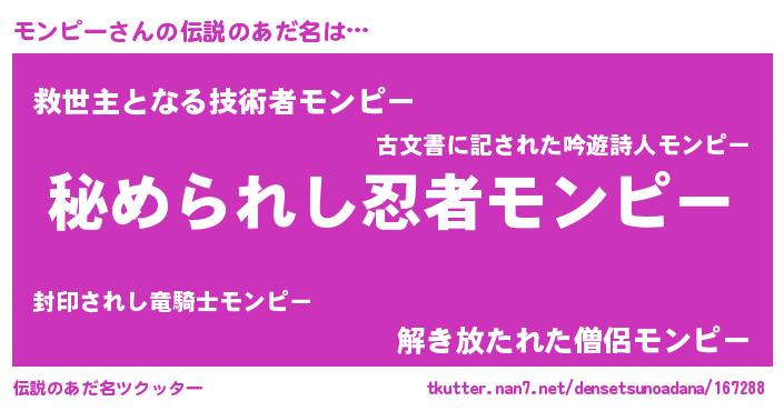 | ヘコむあだ名 | 『つくし』『モンっ子』『モンにゅー』 |