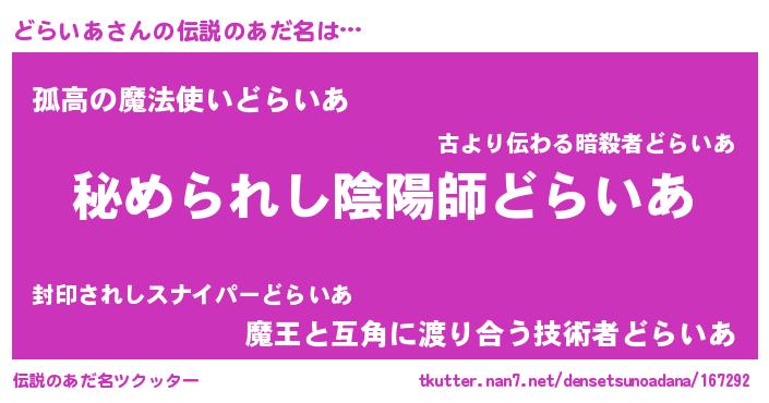 | ファンタジー風あだ名 | 『エターナルドライアー』『クインドット』 |